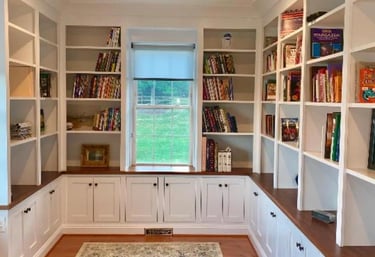 Custom Built in shelving, bars, trim work, and anything else you can image. Design exactly what you want just for your space.